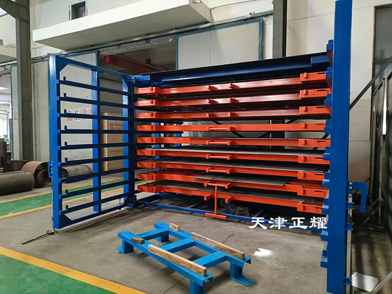 抽屜式板材貨架的另一大優(yōu)勢在于其靈活的存取方式。每層抽屜可單獨搖出,使得工人可輕松取用所需板材。這種設(shè)計大大縮短了找料時間,降低了勞動強度,同時也減少了因頻繁移動板材而造成的損耗。更重要的是,由于每層抽屜可以存放不同種類的板材,工人可以一目了然地找到所需材料,避免了錯拿、漏拿的現(xiàn)象,進一步提升了生產(chǎn)效率。